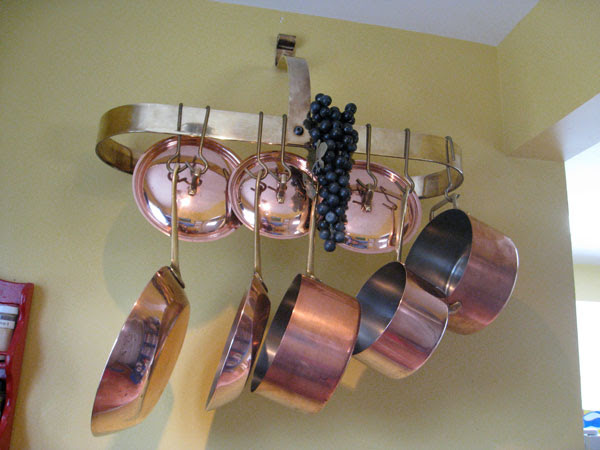 He spent several hours yesterday polishing them up and then today Chris came over and put them up for us since he has the know how and the tools. Chris (bless his heart!) had gone to two hardware stores to find the proper materials and then there was a bit of a glitch today when we discovered that wall has the original plaster and lathing so no stud and of course everything weighs a ton.