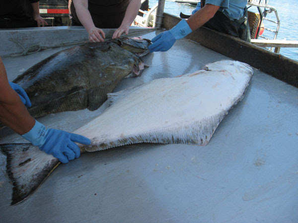 Even though the main goal is halibut, other fish aren't thrown back these days and here is a very colourful selection of rock fish and ling cod. When we went fishing on Gabriola at our summer place there was a big kelp bed in front of our place so we could always jig for cod if we got skunked on salmon. Not much fun to catch but delicious eating. I remember once we were up there with Roger and Kerry and Roger made the most fabulous fish and chips.