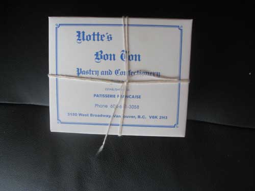 Yesterday we happened across Bon Ton's recently relocated in Kits on Broadway and couldn't resist going in since I remember my mother talking about how "fancy" it was although I don't think we ever had anything from this "Patisserie Francaise"...too expensive. Since John and Carol were coming for lunch today I thought I would buy a few things.