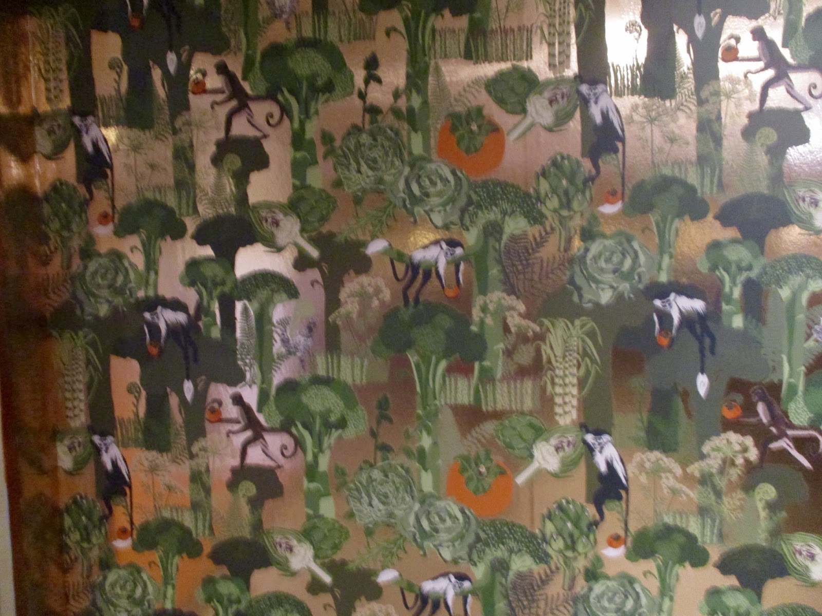 I went to see the exhibit again yesterday and take a tour with a docent. It was great and I bought the exhibition catalogue...just counldn't resist! It's just so much fun going to this wonderful art museum and the new Persimmon Cafe is now open so took some photos which didn't show up quite so well because of the light but I just loved the colours, the set up, and also the wallpaper. When I heard about this wallpaper it sounded very busy and was thinking it wasn't exactly what one wanted after such a feast for the eyes viewing exhibits but I was wrong....wonderful.